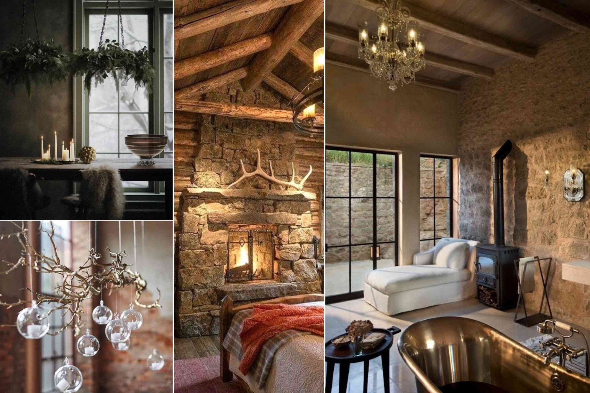 Winter neutrals This interior works because it stays within a soft winter palette. Think warm greys off-white muted green and natural wood. Nothing is bright or loud yet it never feels flat. The mix of knit pine branches weathered wood and stone adds warmth without adding color. Good to know: if you want a winter look that lasts beyond the holidays choose neutral tones and bring in the season through texture. Wool linen wood and greenery are easy to swap or reuse all year round. #WinterHome #NeutralPalette #AlpineInteriors #CozyTextures #NaturalDecor #SeasonalStyle