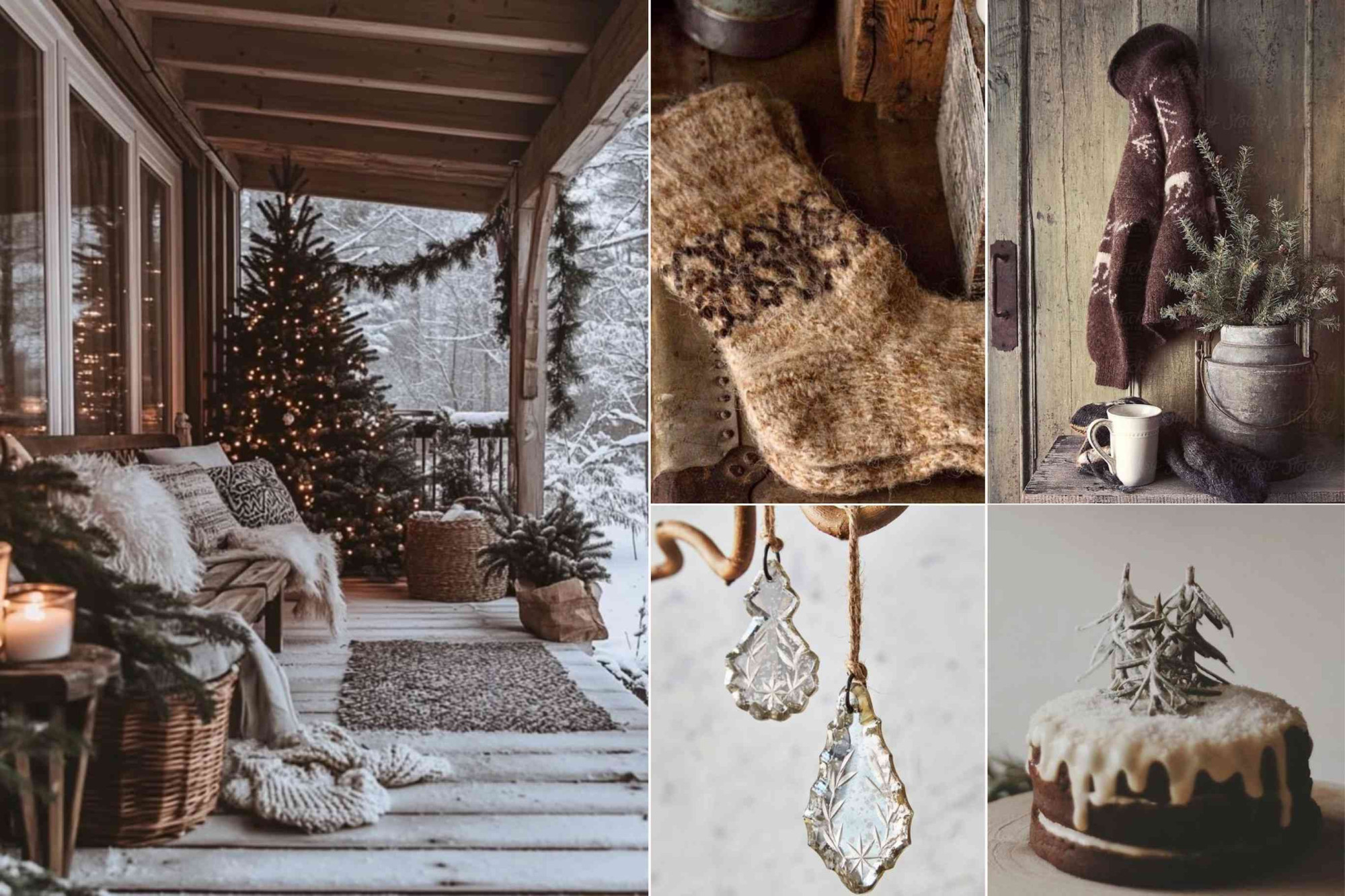 A winter palette inspired by wood This look works because it stays close to nature. Soft greys weathered wood warm browns and muted greens set the base. These tones feel calm and timeless and are easy to mix without overthinking. The key is contrast: rough wood next to soft greenery light snow against darker textures. Practical tip: keep decorations in one color family and vary the materials instead. Wood pine metal and fabric in similar shades create depth without visual clutter. #WinterDecor #NaturalColors #AlpineStyle #cozyoutdoor #SeasonalHome #CalmInteriors #WinterPalette