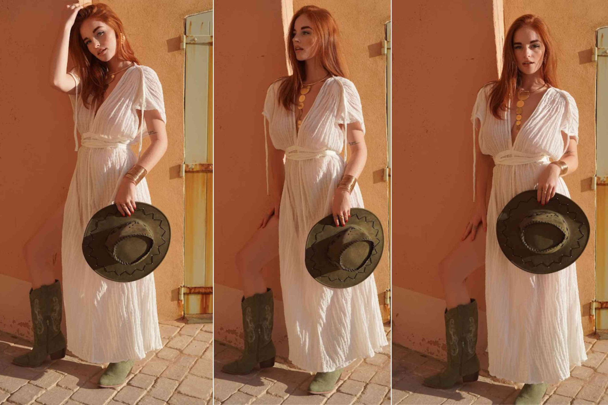 โจ Sahara Dream Dress: Summer in a Dress Step into a world of sun-drenched days and golden evening light with the Sahara Dream Dress from the Azur Bohemian Collection. This dress captures the essence of slow coastal living and free-spirited elegance. Flowing silhouette and soft, crinkled cotton texture Deep V-neckline, gently draped shoulders and an adjustable waist tie for comfort or sophistication Side slit for breezy movement with every step Sun-faded white shade that echoes the calm of the Côte d’Azur Whether you’re strolling barefoot along the beach or celebrating the night with boho jewelry and boots, this dress fits every moment. #marrakech๐ Discover it now