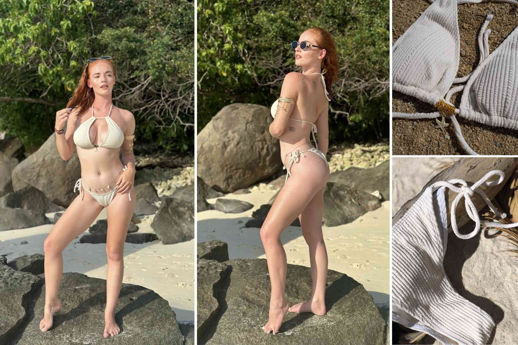Breezy Elegance in Ivory Seashells Meet your new summer essentials: the Ivory Starlit Seashell Bralette & Under. Crafted in soft ivory with thoughtful details like side loops, stretch fabric and adjustable ties, they’re designed for comfort and timeless appeal Shop. Visualize this: salt-kissed skin, the golden glow of early morning light and a look that transitions from beach stroll to sunset dinner. Their understated elegance makes them perfect on their own or layered under a linen shirt, paired with high-waisted short, or styled with a lightweight sarong. Style Tip: Let the simplicity shine. Keep accessories minimal, perhaps a pair of shell earrings or a straw tote to complement the serene vibe. #CoastalElegance #IvorySwimwear #TimelessStyle #SummerEssentials #tulum