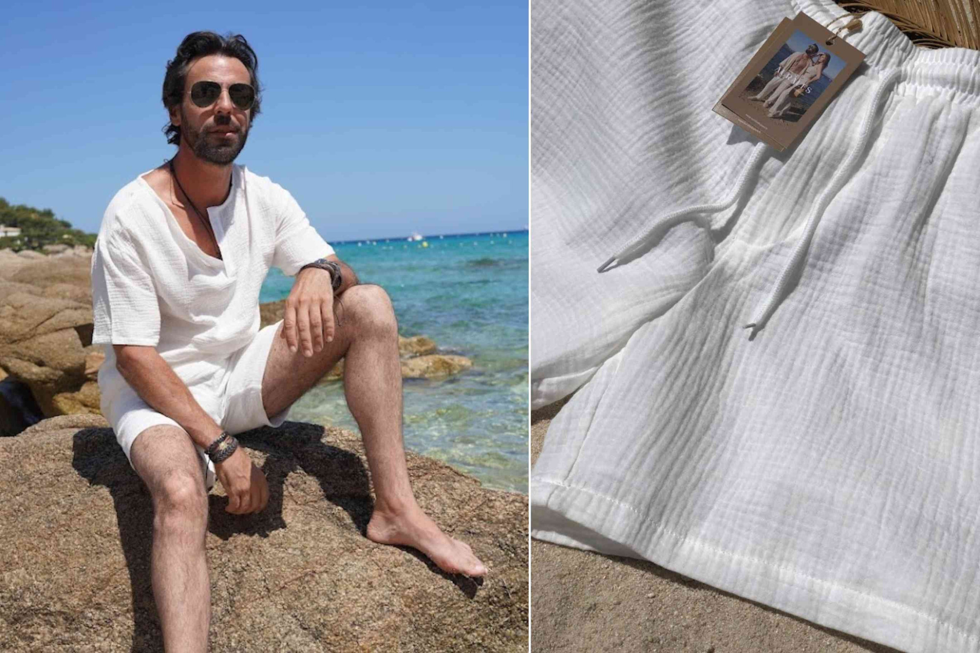 The Sandy Tunic is relaxed and refined, made in a soft beige-toned fabric with a flowing longline cut. Designed with drop shoulders, half sleeves and an open front, it adds understated elegance to your swimwear or loungewear. Styled here with linen shorts and coastal ease. It’s a summer staple for him (and perfect for her too). ๐ Color: Soft beige๐ Part of the Azur Collection๐งบ One-size unisex fit→ Shop the look on Les Couleurs du Monde #AuralesBohemian #AzurCollection #SandyTunic #CoastalStyle #BohoMenswear #BeachEdit #ibiza