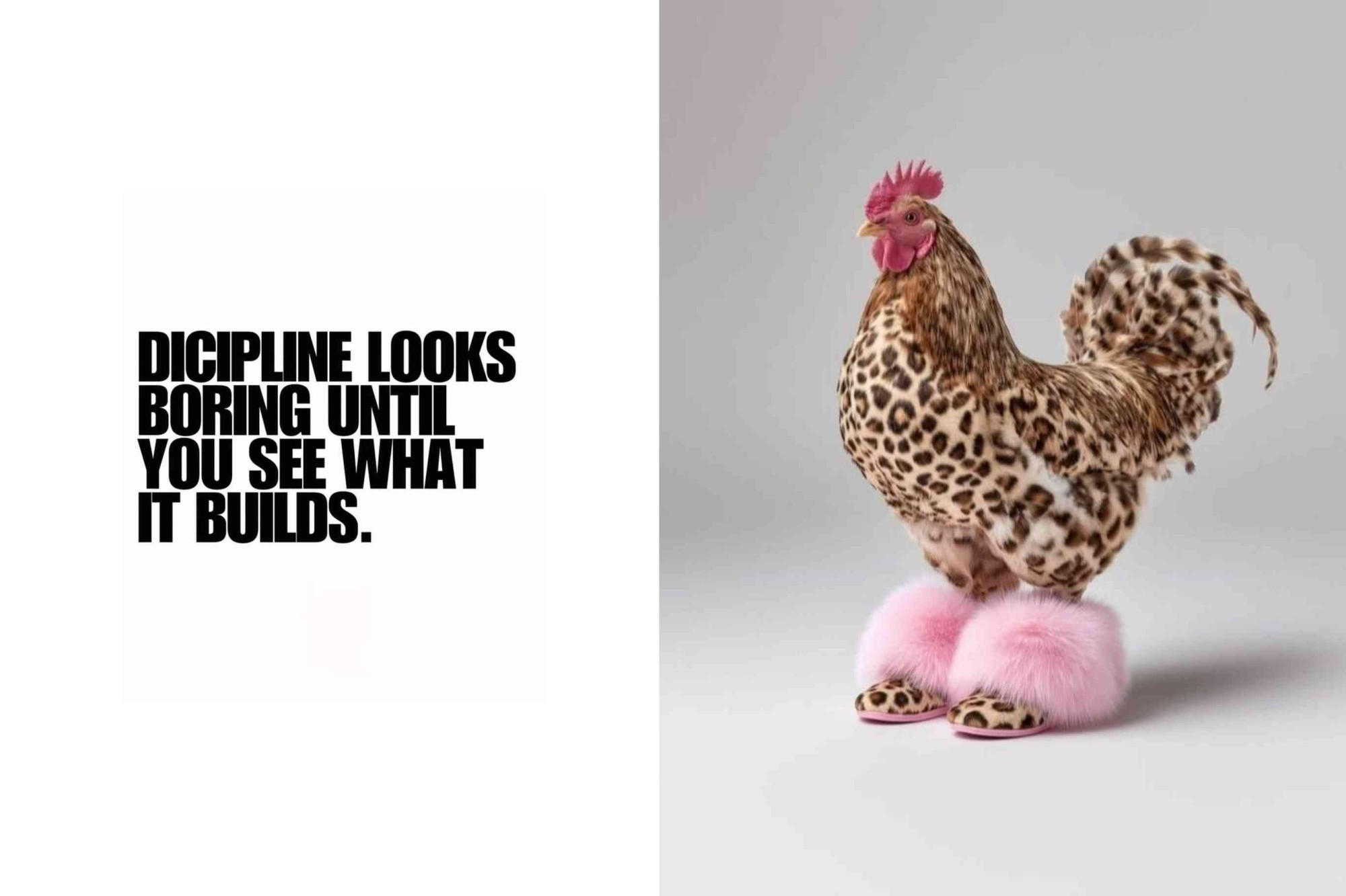 Discipline isn’t glamorous — it’s repetition, patience and quiet effort.But behind every bold vision or beautiful creation lies that same quiet consistency. Even the wildest ideas are built one small step at a time.So keep showing up — your sparkle is growing. ✨🐓 #LesCouleurs #CreativeDiscipline #MotivationWithStyle #BuildYourMagic