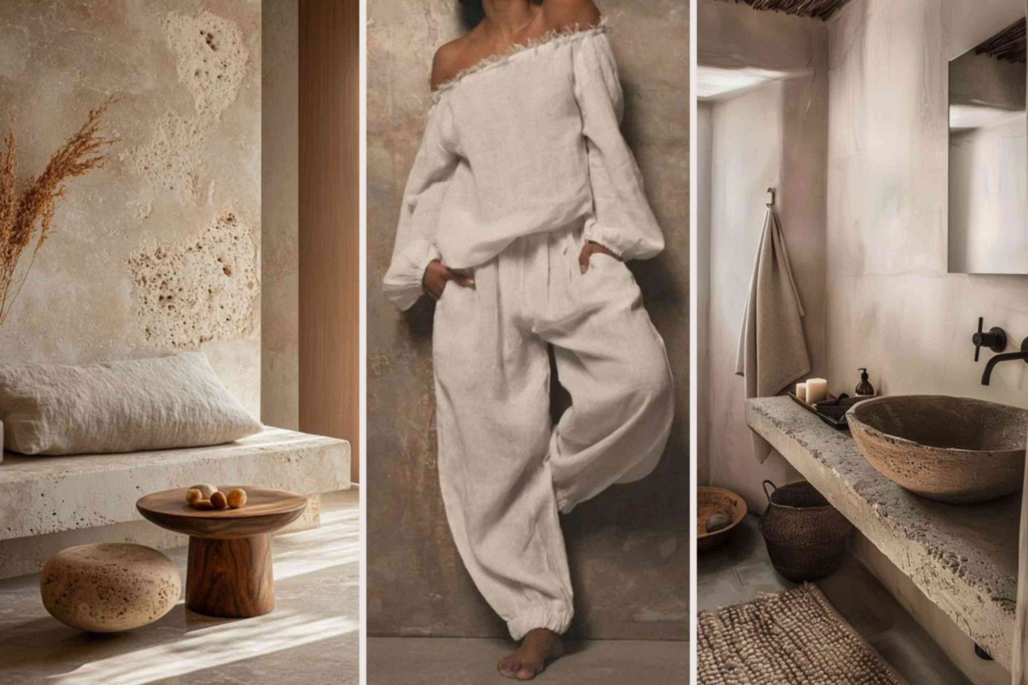 Earthy minimalism with wabi-sabi influences: embracing simplicity, raw textures and natural imperfections.The focus lies on materiality, stone, raw wood, linen, terracotta and on creating a serene atmosphere with very few, but meaningful pieces.It’s not just minimal; it’s soulful, tactile and intentionally imperfect. By Les Couleurs de marrakech