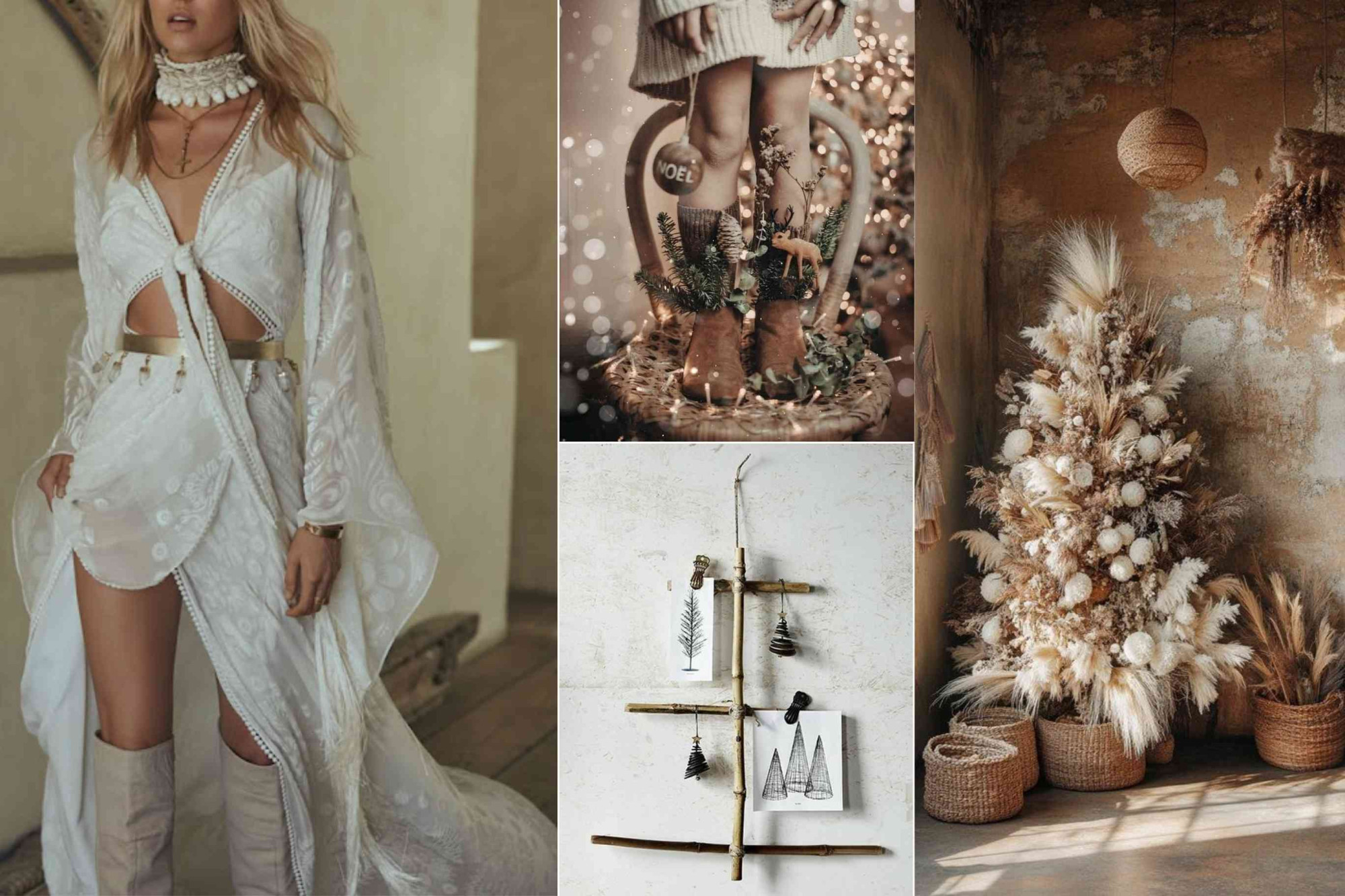 Bohemian winter style Soft whites warm sand and natural textures bring a lighter approach to the season. Flowing fabrics knitted details and handcrafted accessories create an outfit and interior mood that feels relaxed but still festive. A simple idea to try: mix one statement piece with calm basics. A textured dress natural boots or a handmade decoration instantly sets the tone without overdoing it. Less contrast more balance that is what makes this style work. #BohemianWinter #SoftNeutrals #WinterStyle #NaturalDetails #EffortlessLook #SeasonalInspiration #cozychristmas