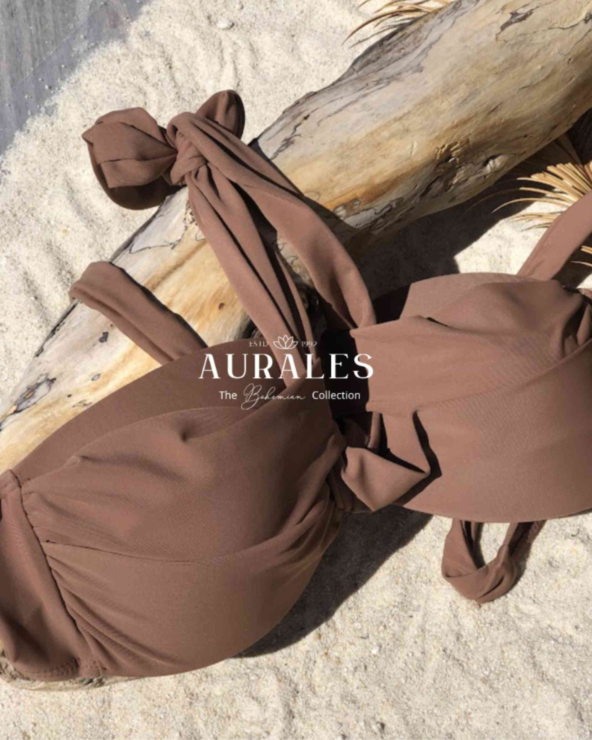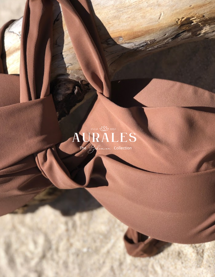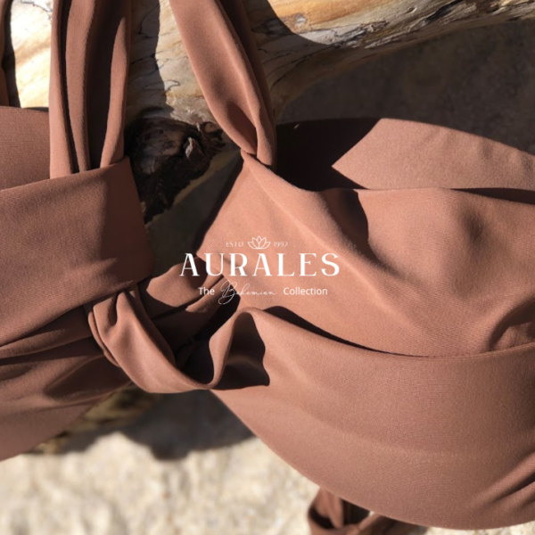 This bikini top features a chic knot detail at the center for a touch of modern sophistication. The rich coffee brown shade adds warmth and elegance, making it perfect for both the beach and the pool. With its simple design, it offers a timeless look that pairs easily with any bottom. Designed for a flattering fit, it combines style and comfort to keep you confident all day long.
