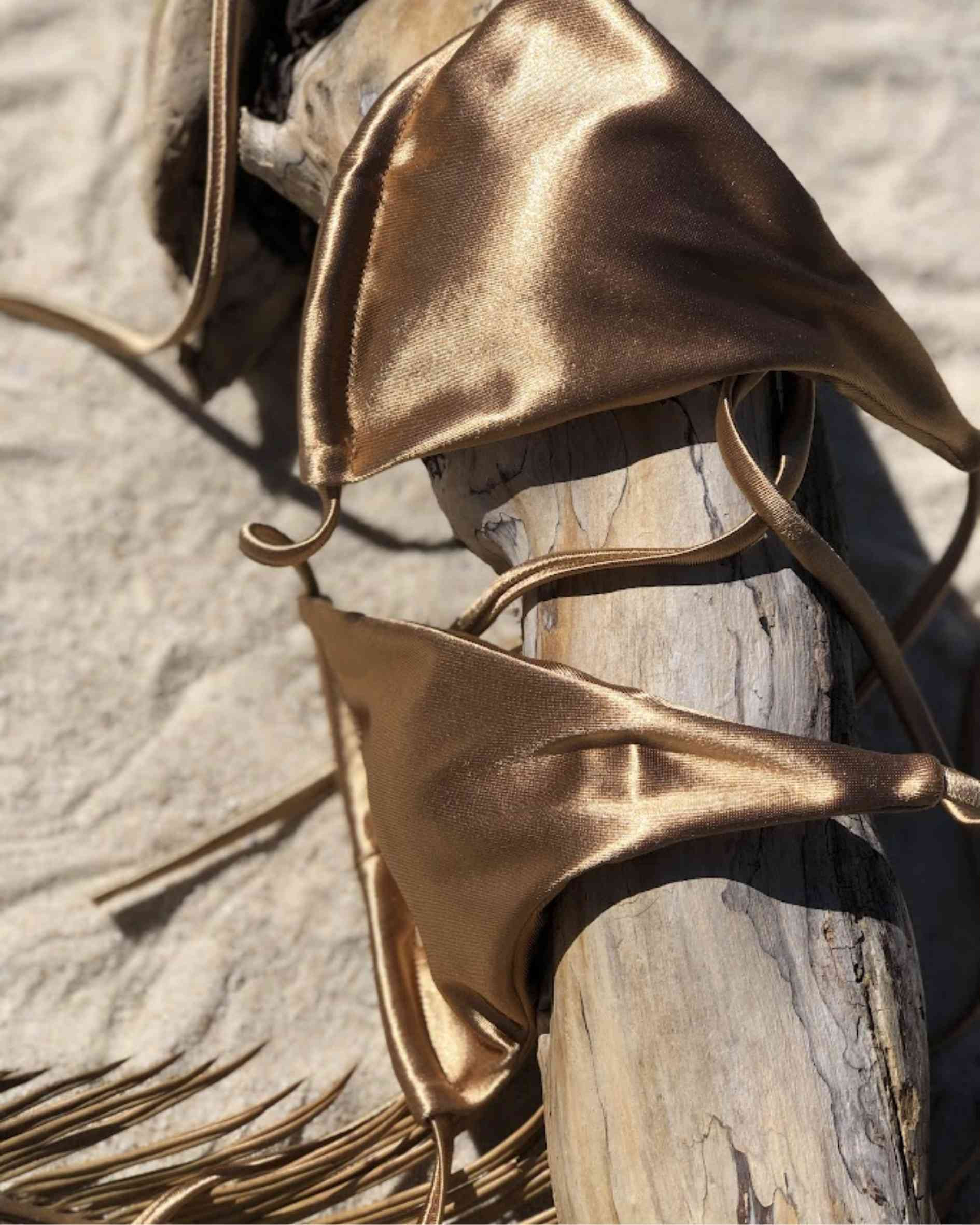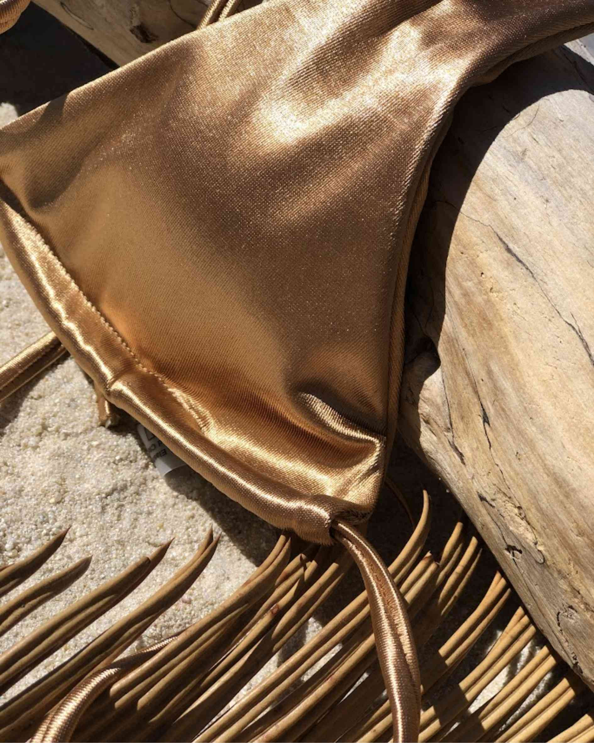 Boho-chic style with our Gold Bikini Top, a timeless piece that adds a touch of elegance to your swimwear collection. The sleek, one-tone design in a radiant golden hue creates a sophisticated and versatile look. Pair it with the matching bottoms for a coordinated ensemble that shines from beach to poolside.
