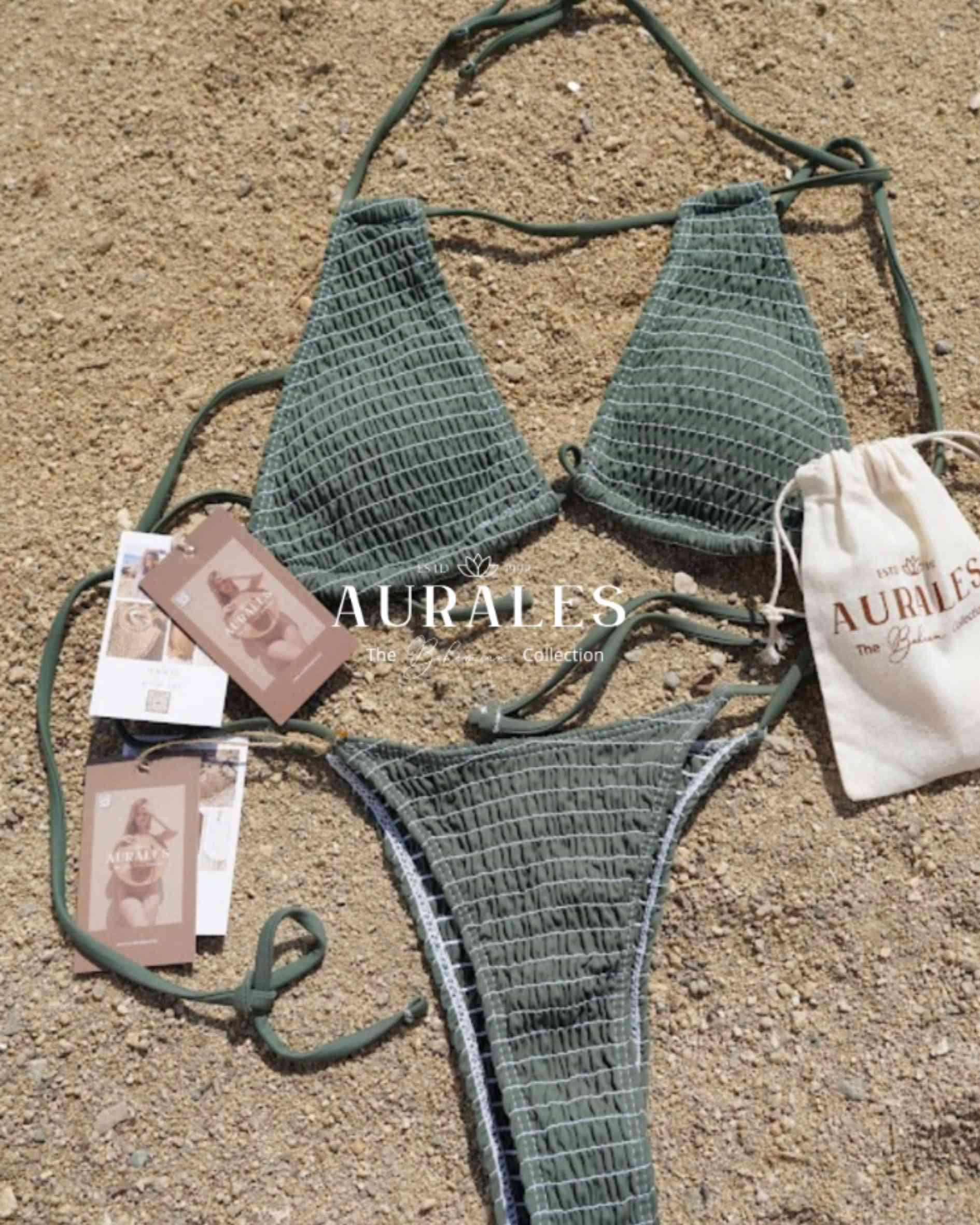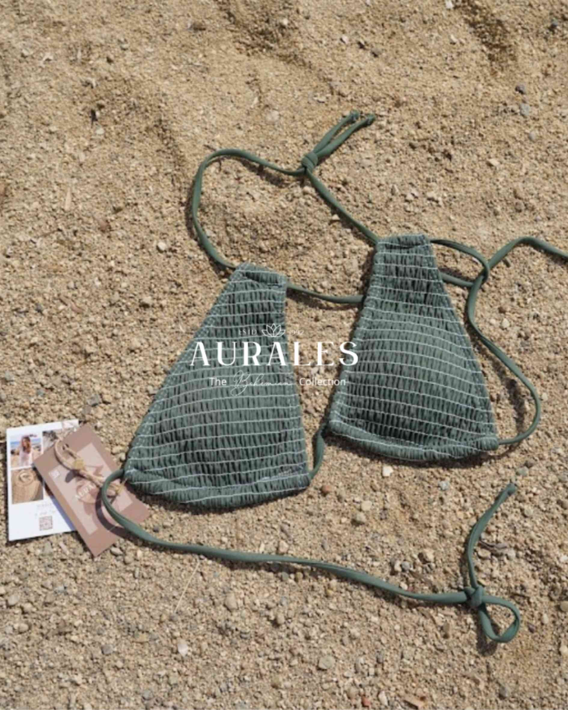 Make a statement with our Green Bikini Top, designed for a sleek and sophisticated look. The clean, one-tone design offers timeless appeal, while the smocked details add a subtle, playful touch. Perfect for mixing and matching, this top combines style and comfort for summer confidence.
