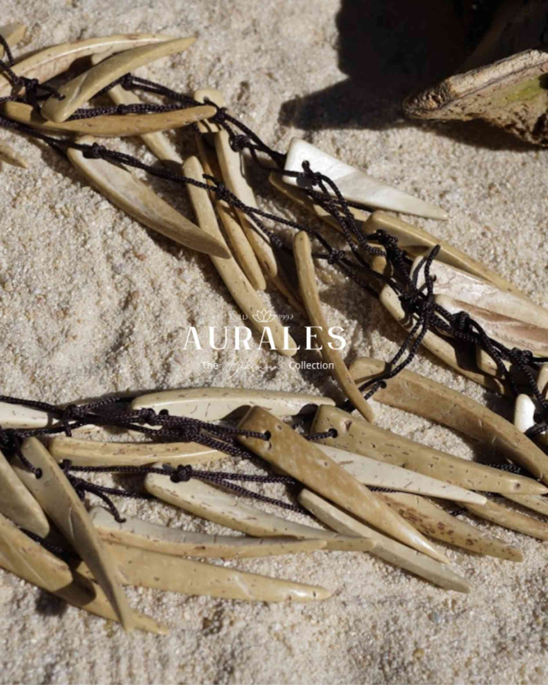 This enchanting necklace is expertly crafted from natural coconut shell, evoking the warm tones of the beach. Each piece is unique, with subtle variations in color and texture that highlight the natural beauty of the coconut shell.