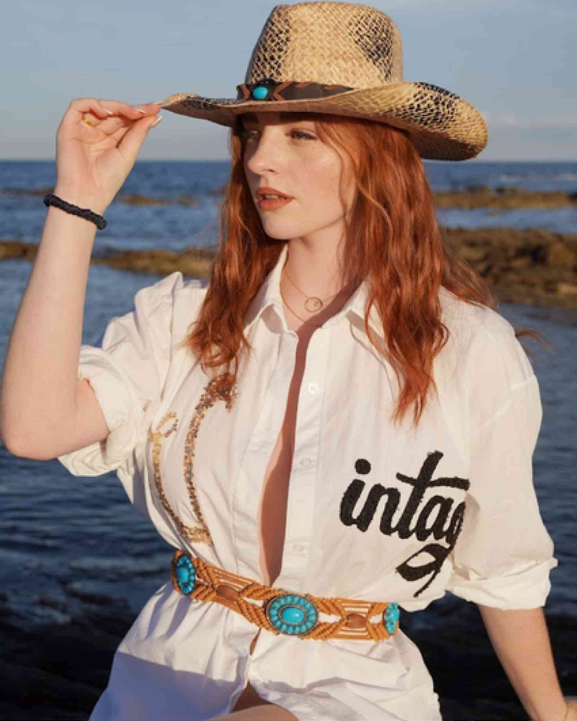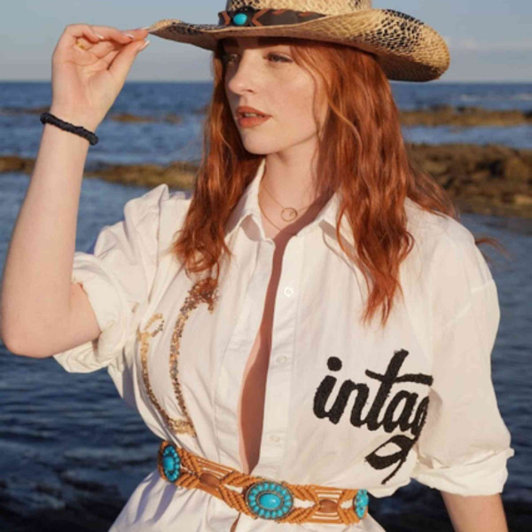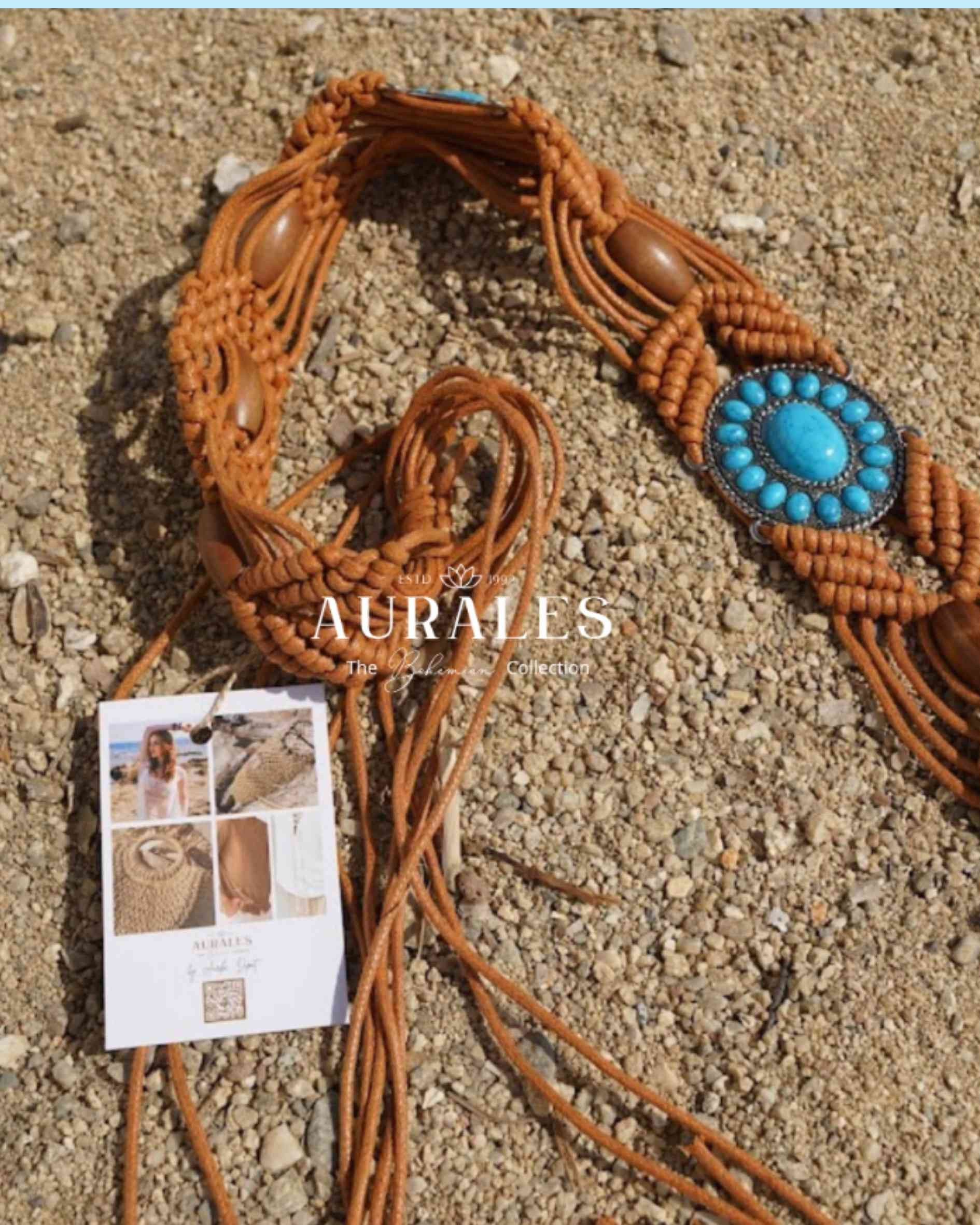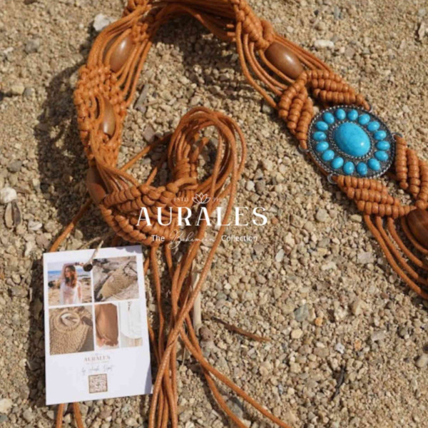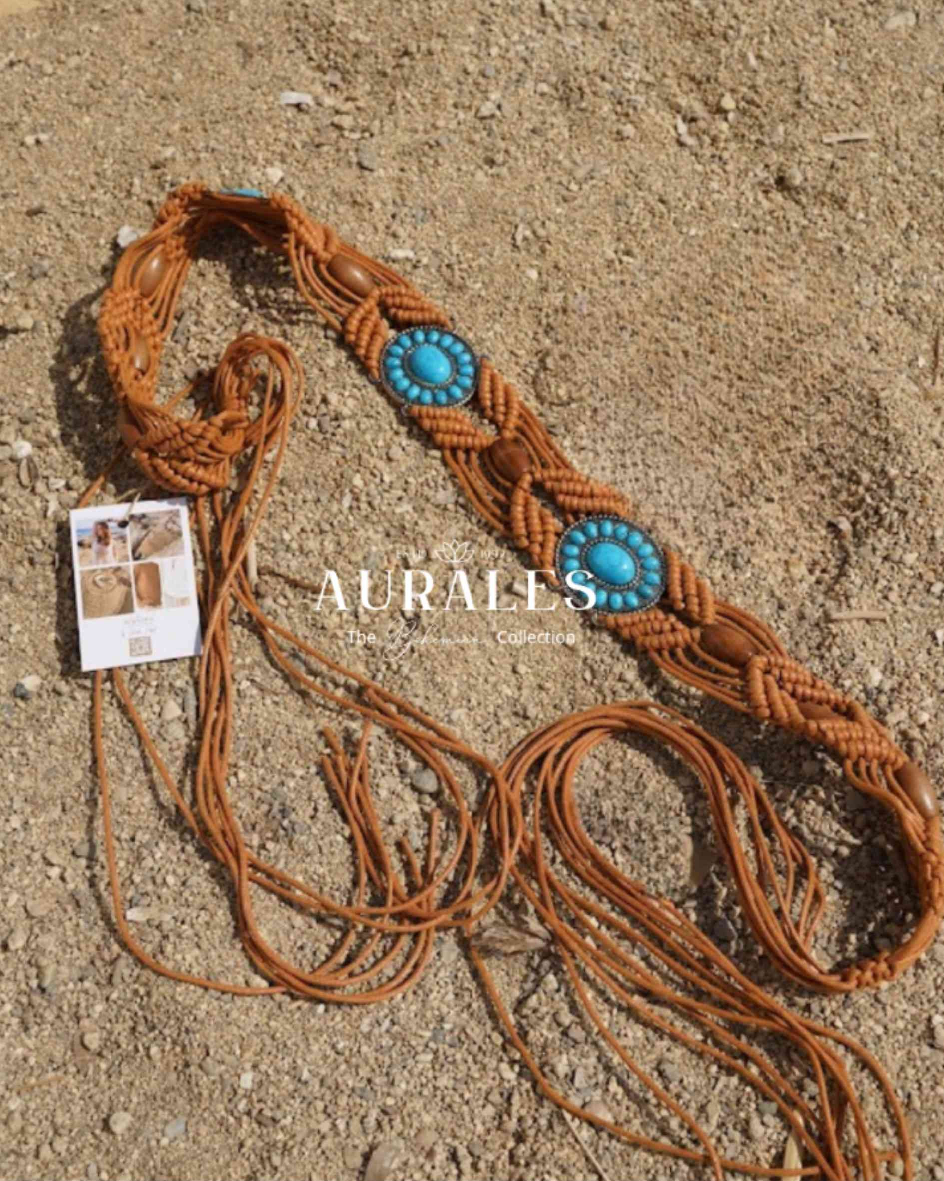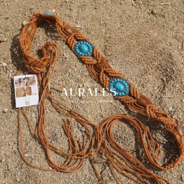 This beautiful brown belt with a touch of turquoise is a stylish addition to your outfit. With its wide design and slight stretch, it offers not only a fashionable look but also a comfortable fit. If you want to accent your skirt or dress, this belt will add a touch of color and style to your boho look.