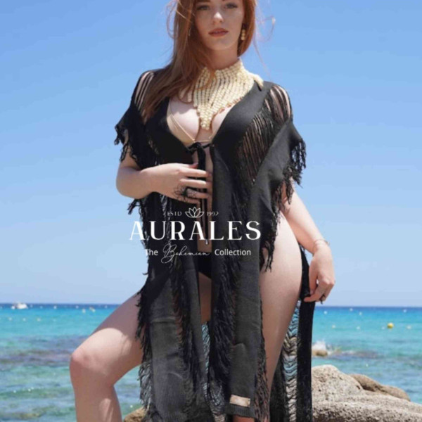 Add a stylish layer to your beach look with our black cover-up. Designed with a boho-chic touch, it’s perfect for sunbathing, poolside moments or a relaxed afternoon by the water. Lightweight and easy to wear, this cover-up brings comfort and style together, making it a great addition to your summer wardrobe.