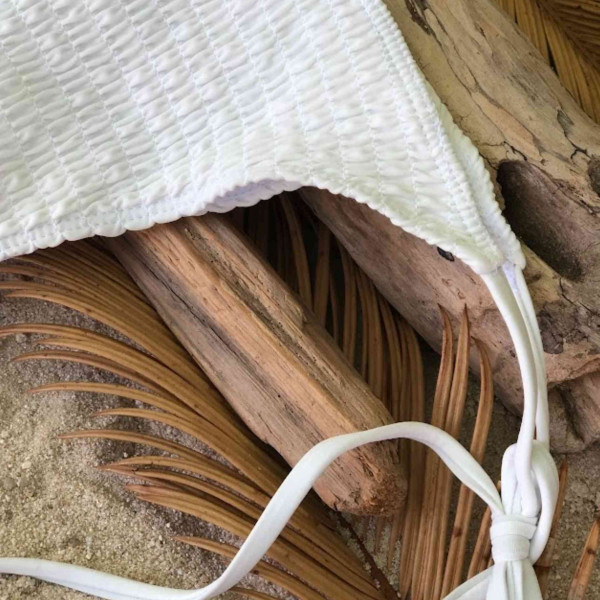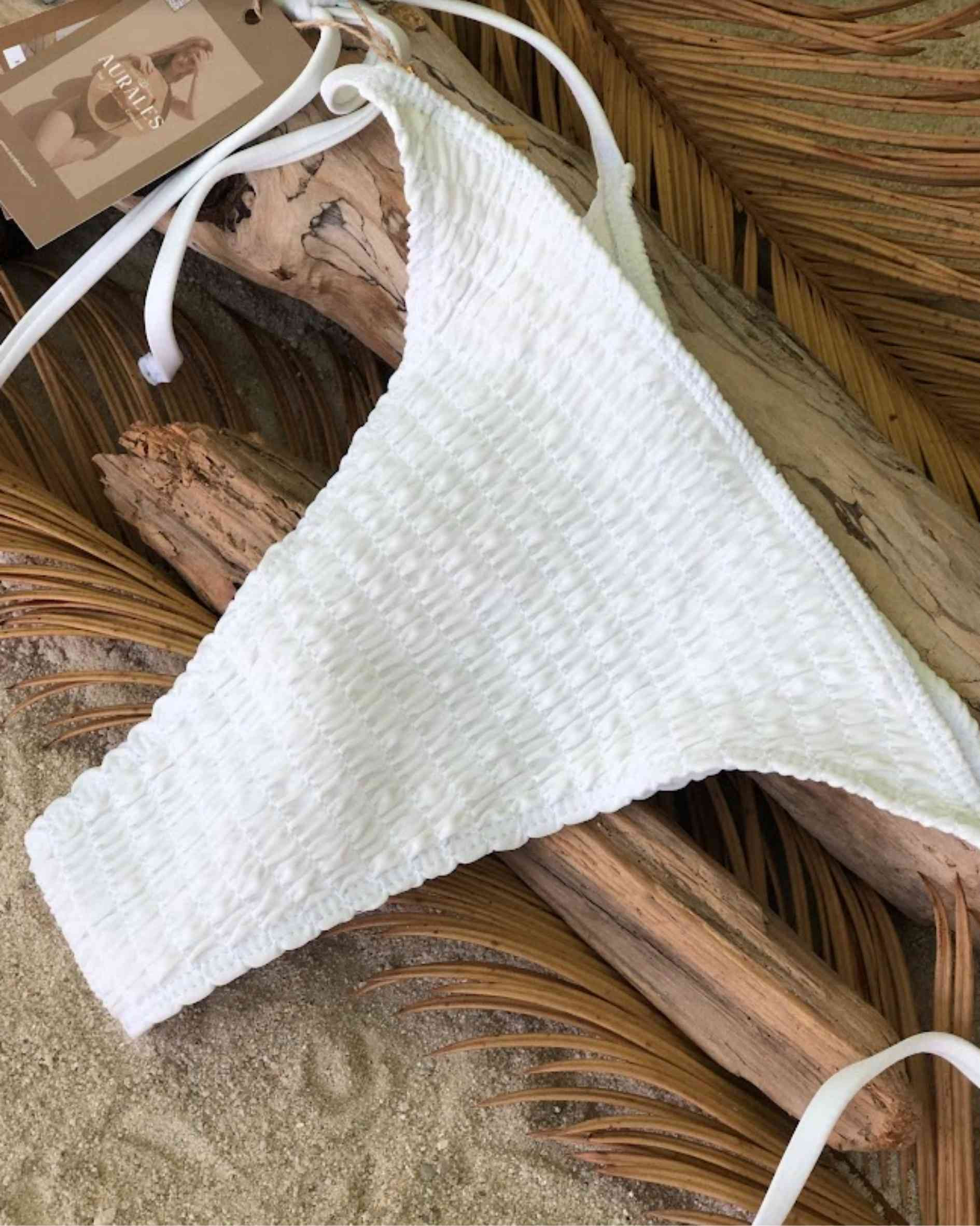 Step into summer vibes with our white bikini bottom, adding a touch of playfulness and sensuality to your beach moments. With its charming tie-side straps and string design, this bikini bottom brings functionality to your beach ensemble. With its timeless white color and subtle allure, this piece is an essential item for your summer wardrobe, ready to elevate your beach style to new heights!
