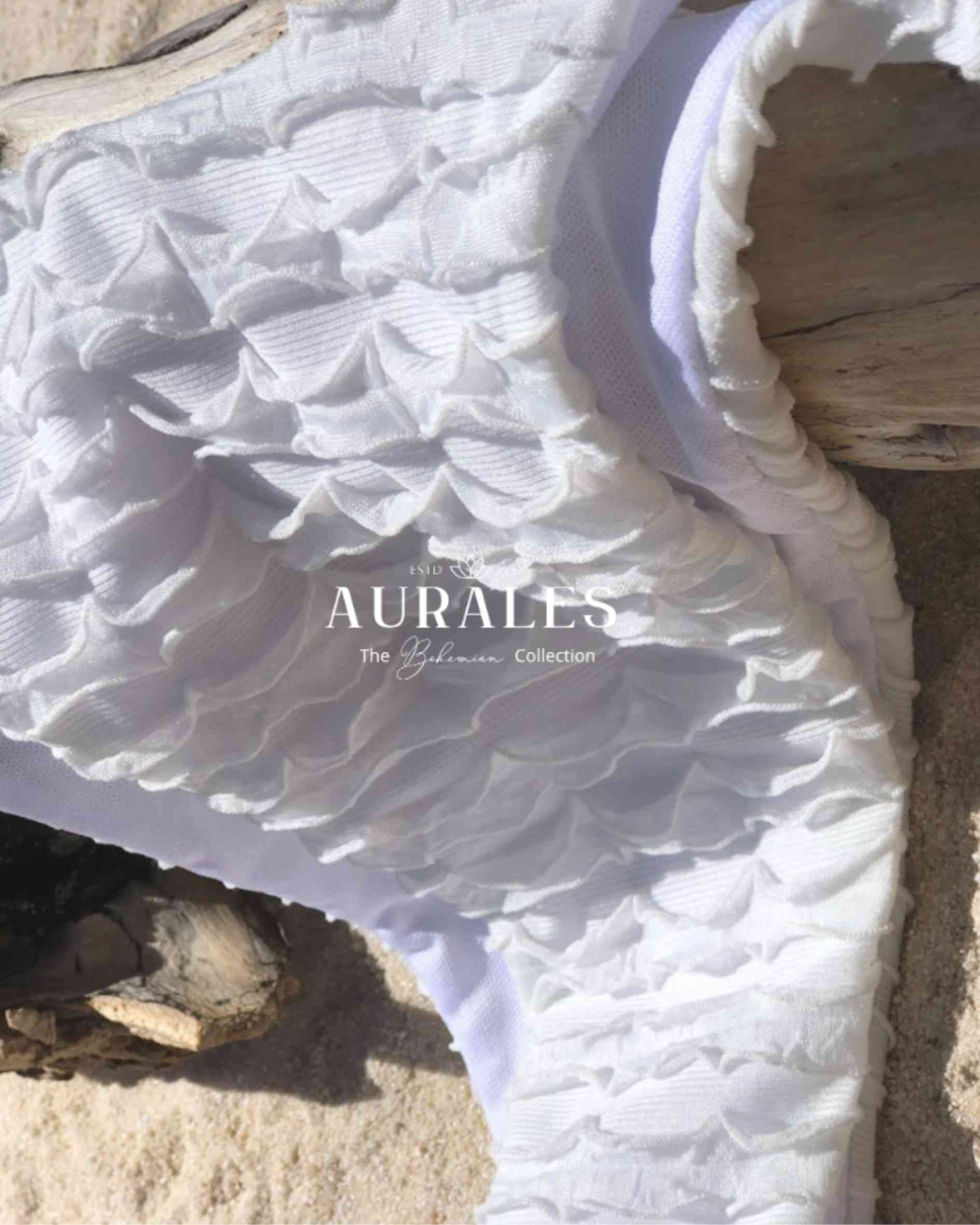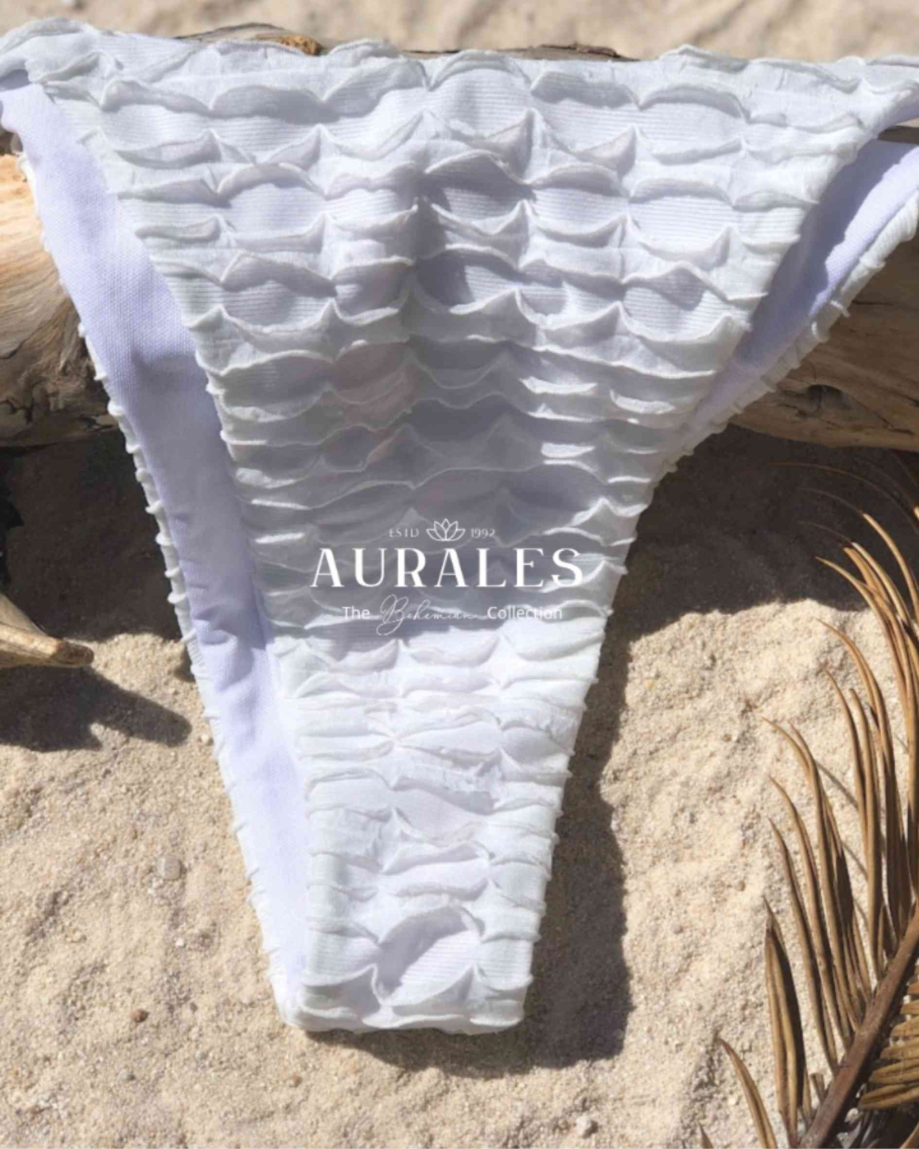 The Shell Whisper Under is a soft echo of ocean tides — refined, delicate and irresistibly textured. Designed in a crisp white hue with sculptural ripple detailing, this bikini bottom blends simplicity with quiet sophistication. Its flattering mid-rise cut and soft stretch fabric make it a go-to for minimal styling with a coastal twist. Perfect for sun-kissed days and slow, salty moments by the sea.