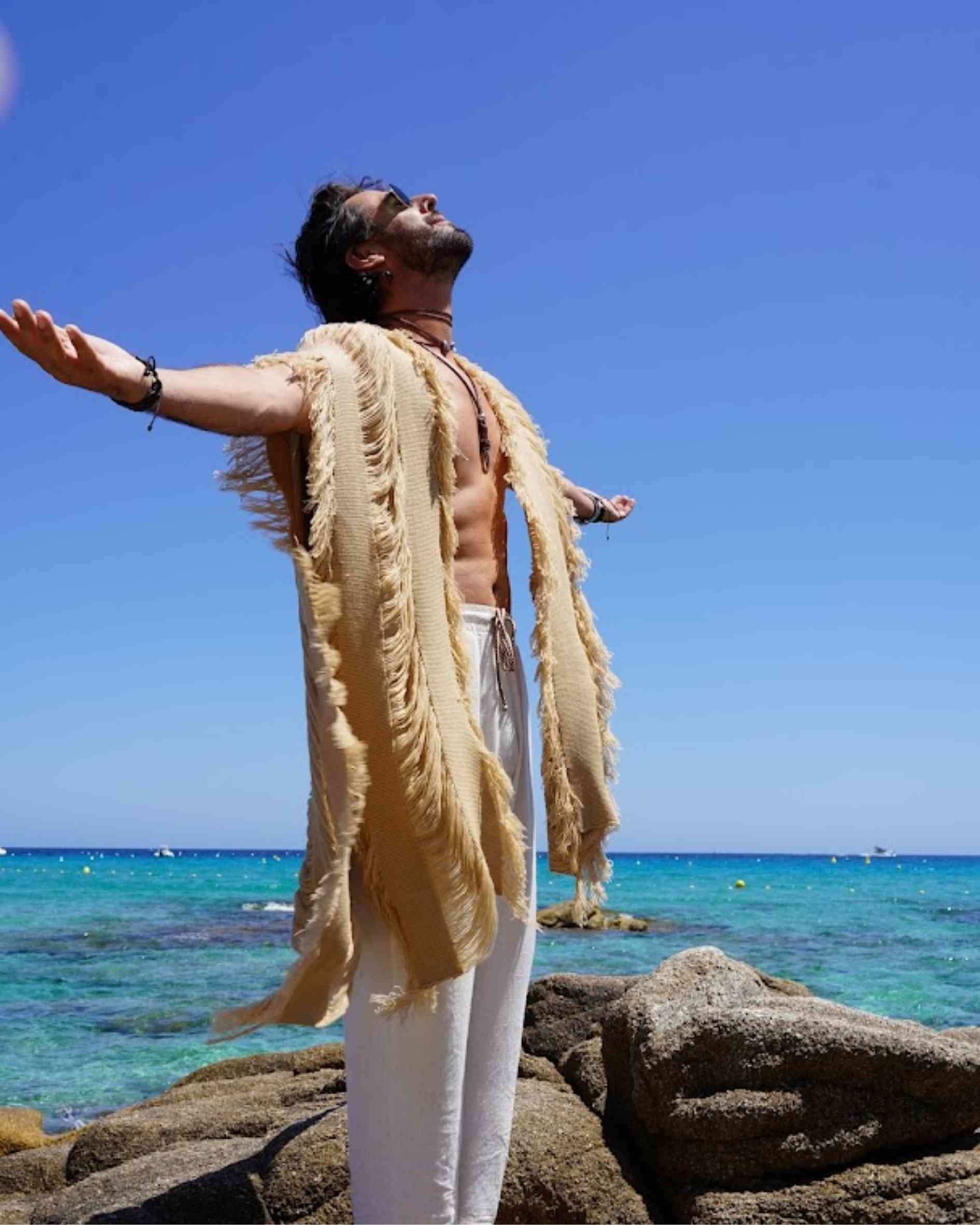 This beach kaftan in a beautiful camel color is perfect for relaxation and adventure at any beach destination. Our "Camel Coastline Kaftan" is not only stylish but also functional. The asymmetrical design and fringe details add a playful touch to your outfit. Whether you're a beach lover looking for a chic cover-up or a bohemian soul wanting to embrace the freedom of the beach, this kaftan is a must-have for your summer wardrobe.