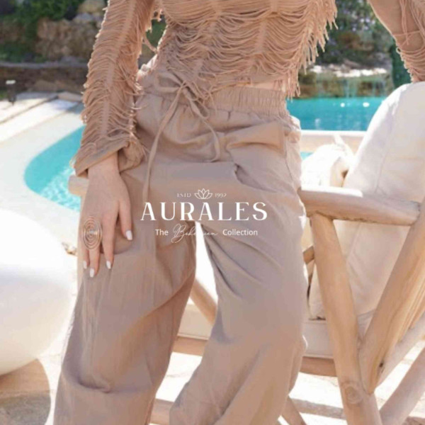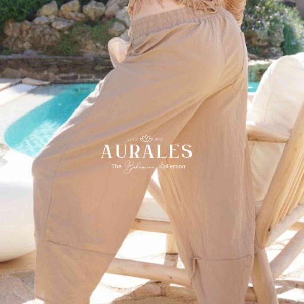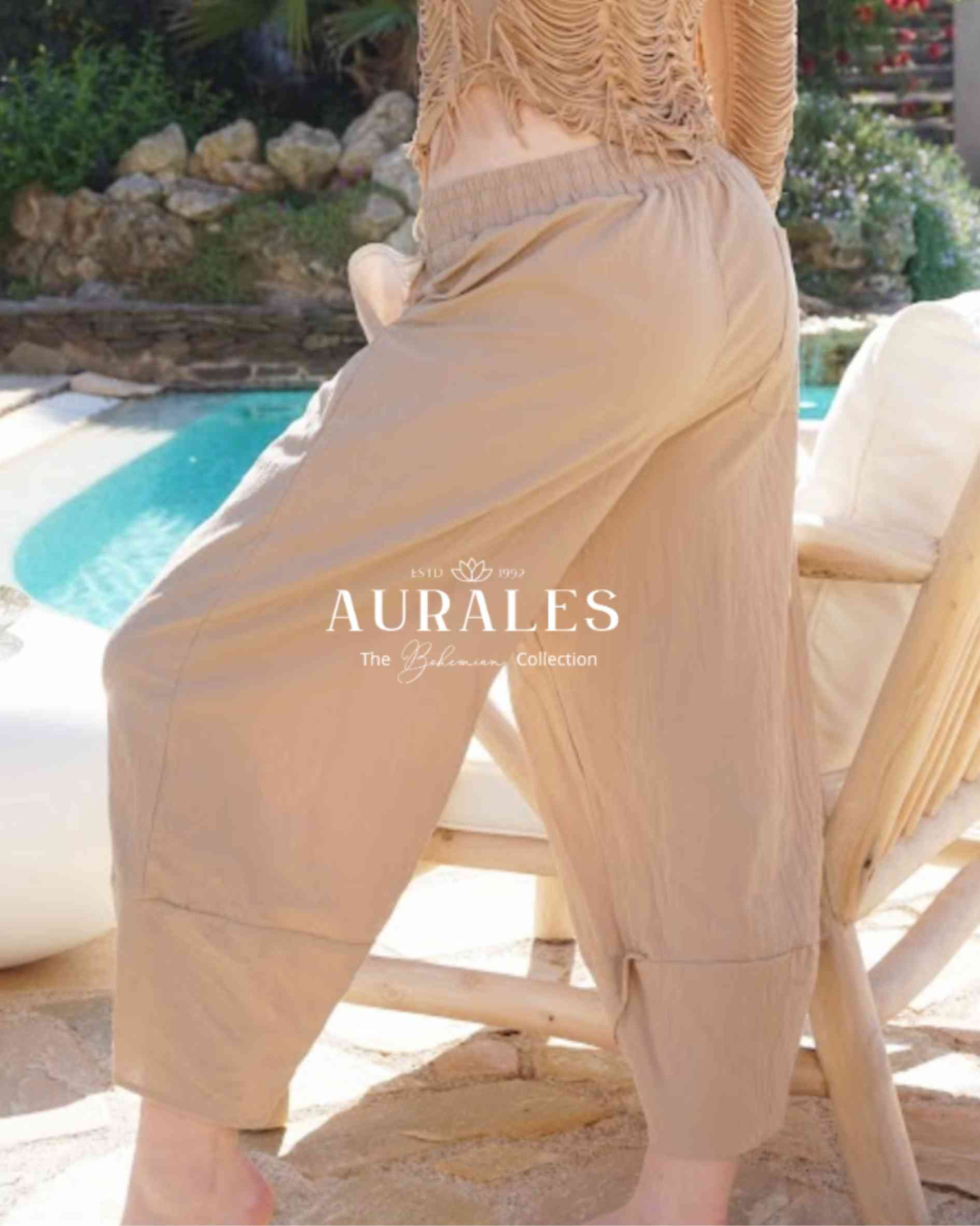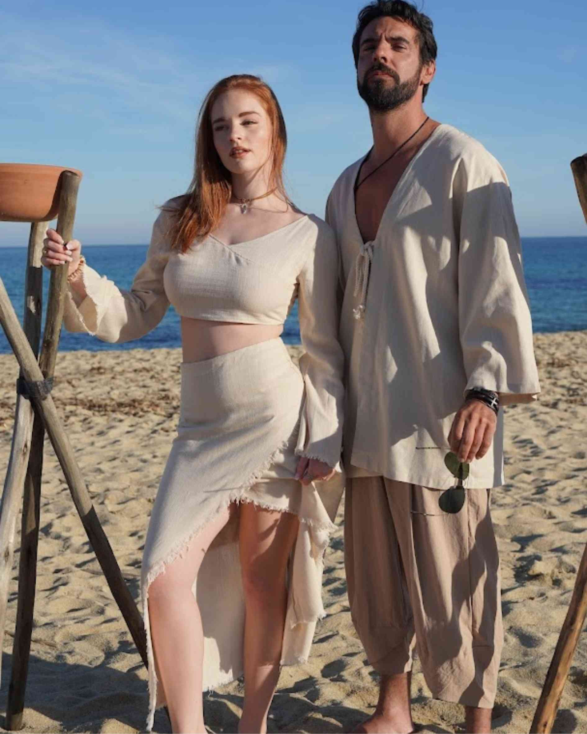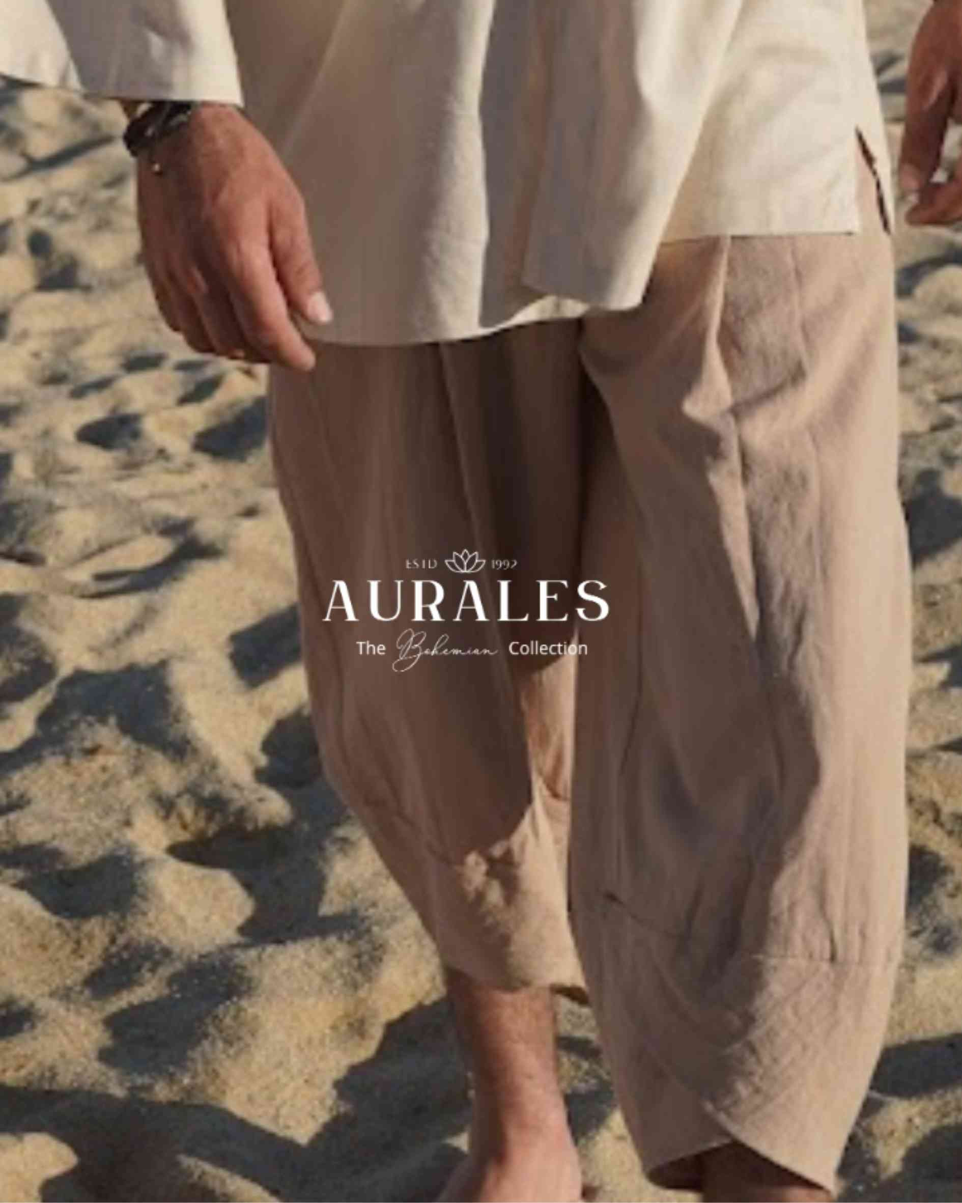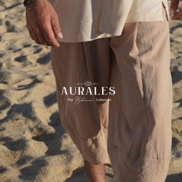 These Sand Wide-Leg Trousers are crafted from lightweight, soft natural fabric that moves gracefully with every step. Featuring an elasticated waistband with adjustable drawstrings and subtle stitching along the hem, they offer both ease and refinement. The neutral sand tone pairs seamlessly with any look — perfect for wearing barefoot on the beach or styled with layered tops for a polished, resort-ready outfit. Designed for both him and her, the relaxed silhouette makes them a timeless essential for slow mornings, sunlit walks and creative moments by the sea.
