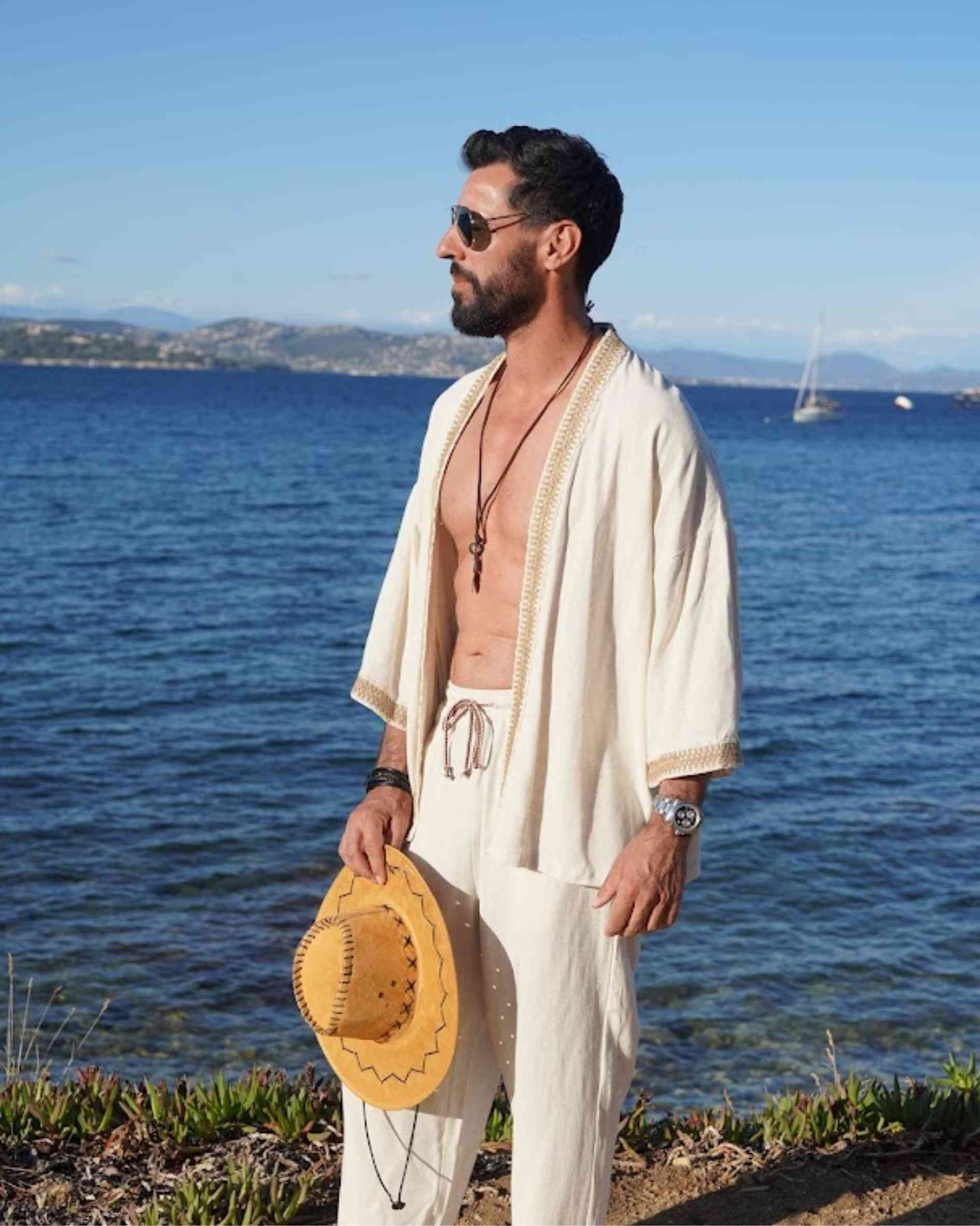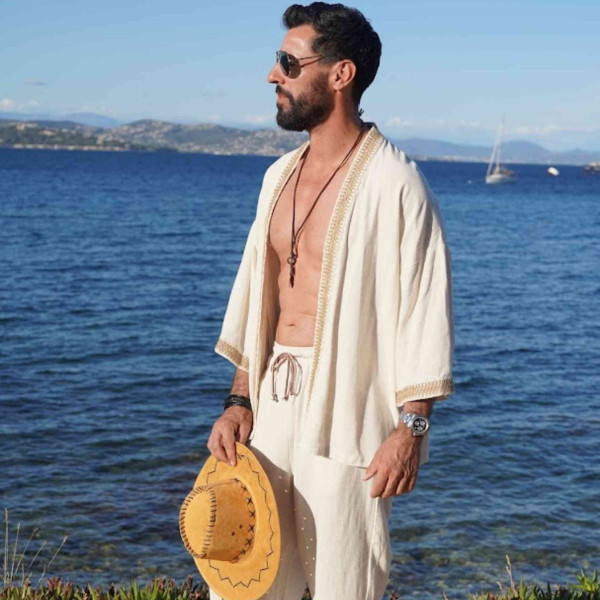 The Desert Winds Drape is an chic layering piece designed for calm days and barefoot comfort. Crafted in a soft beige tone, this lightweight cover-up flows gently over the body with a relaxed fit, drawstring detail and dropped shoulders. Its textured fabric and three-quarter sleeves offer an elegant balance of structure and ease — ideal for beach days, market mornings or cozy moments in between. Throw it on over your swimwear or wear it open over linen sets for a naturally bohemian silhouette.