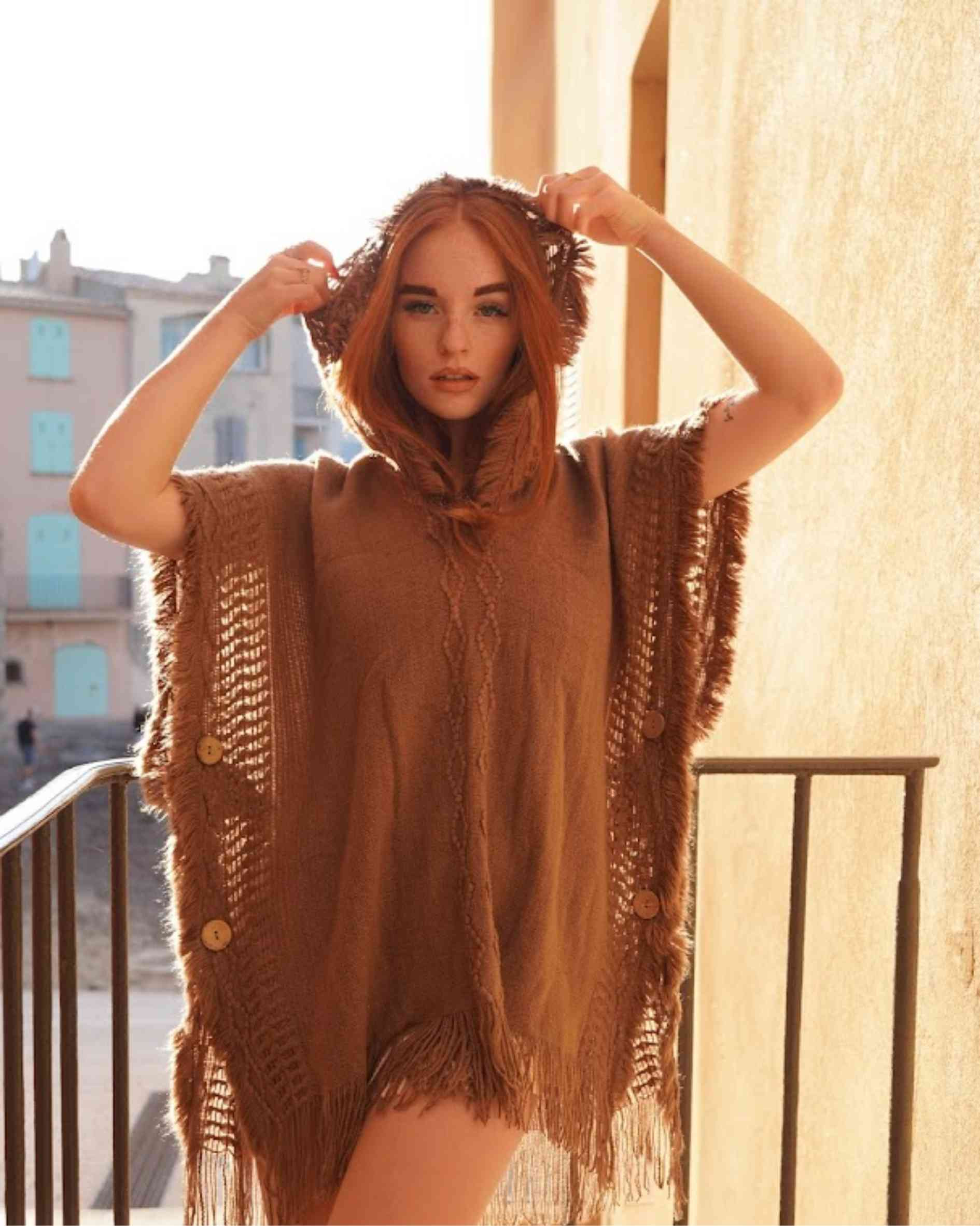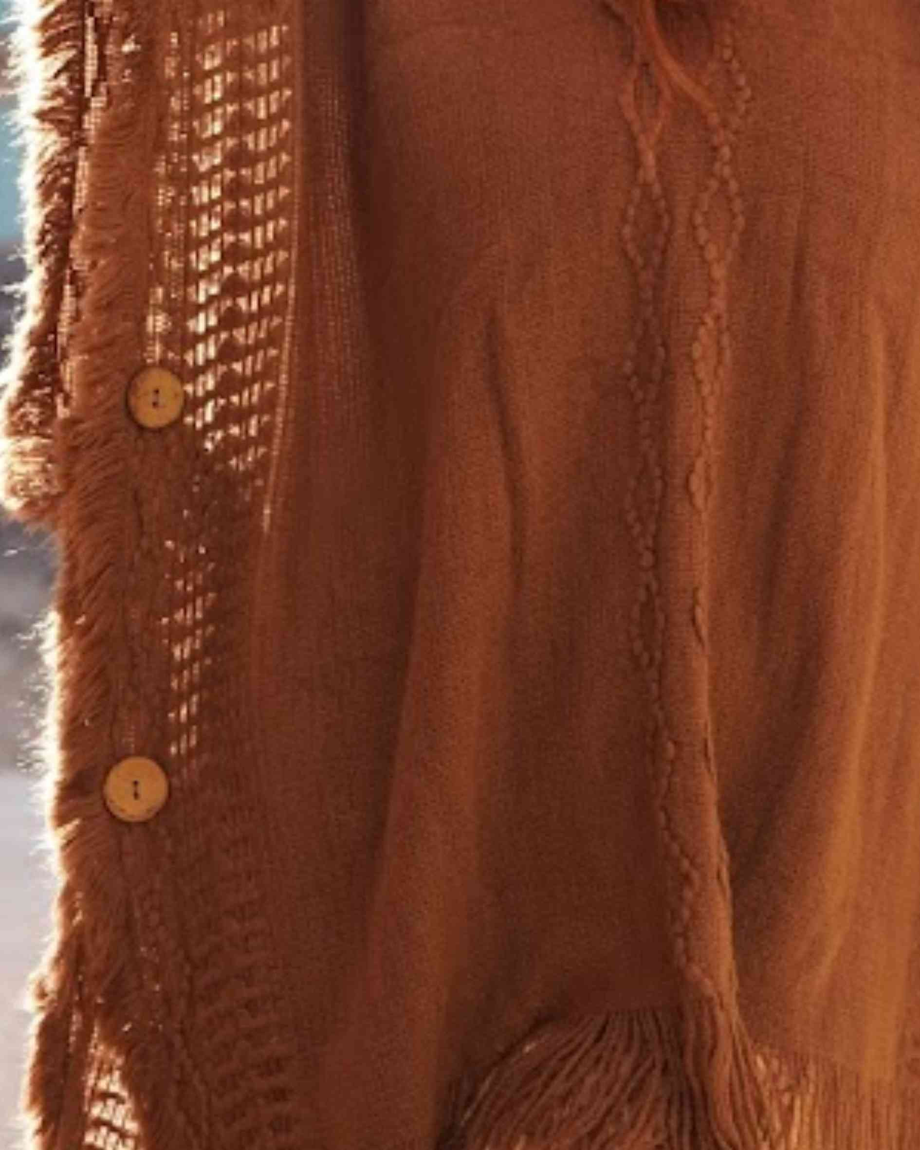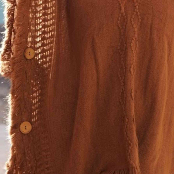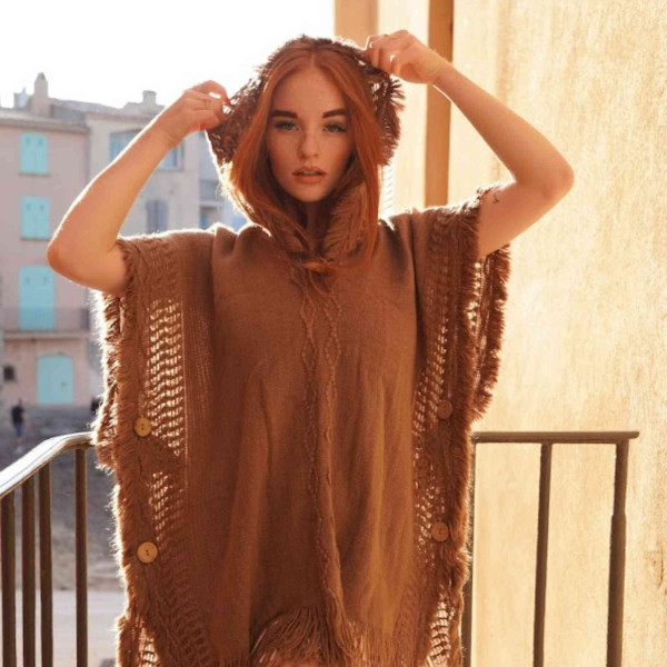 Made from 100% polyester, the Bohemian Cinnamon Tuloncho features a plain yet elegant design with a hooded cape silhouette. Its loose fit allows for easy layering, offering both comfort and movement. The fabric has a soft, lightweight feel and a casual drape, making it ideal for everyday wear with a touch of boho flair. Unembellished and versatile, this piece is perfect for those who love minimal styling with maximum impact.