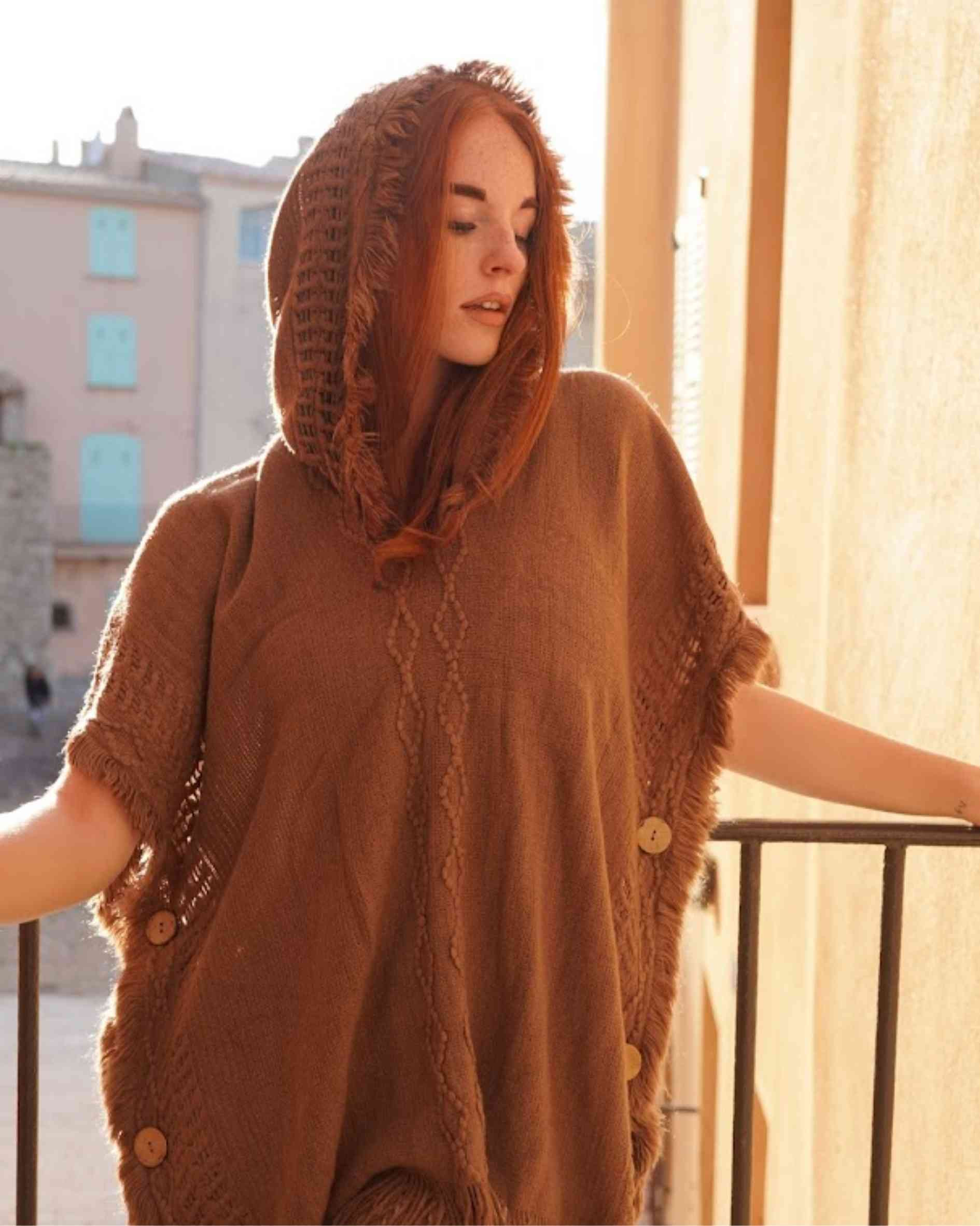 The Bohemian Cinnamon Tuloncho, designed in a rich, cinnamon tone and shaped like a flowing cape with a soft hood, this piece adds warmth and style in one graceful layer. With its loose fit and minimalist finish, it drapes beautifully over any outfit — from breezy dresses to casual denim. Layering up on cool evenings or adding a cozy statement to your day look, this tuloncho invites you to wrap yourself in bohemian softness.