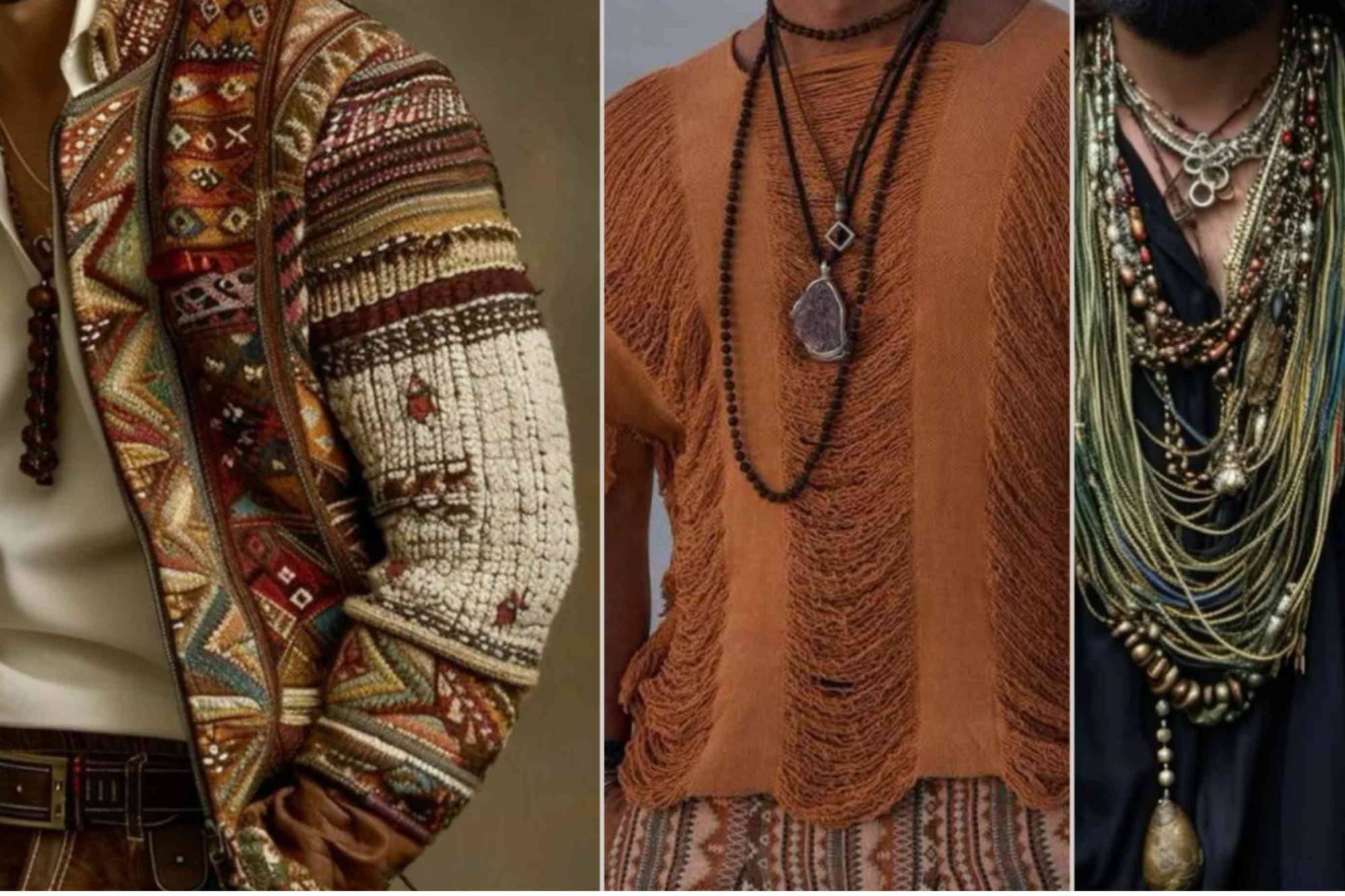 Bohemian style is for everyone and that includes men.It’s all about expression with no rules. Think floral shirts, skinny jeans, wide printed pants, vintage jackets and layers of accessories – from hats to rings and scarves. You can mix and match without limits. The result? A unique look that feels yet bold – a style as creative and unconventional as the man who wears it. — the modern bohemian man blends culture and flair in one look. โจ Would you wear this vibe? By Les Couleurs de tulum.