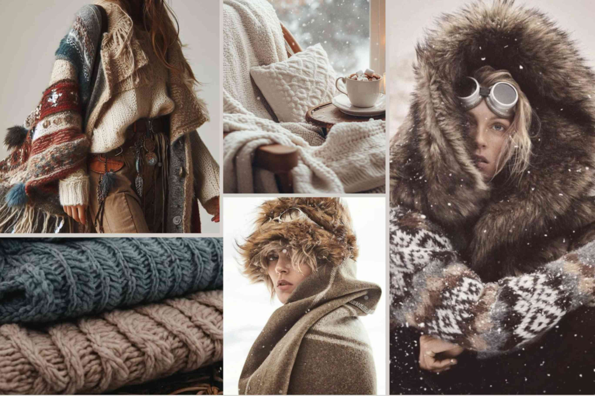 Think soft throws, leather accents and interiors shaped by nature. A story told in material, weight and timeless detail. โจ How do you wear your winter mood on your skin or in your space? #WildBoho #CozyTextures #BohemianLayers #EarthTonedLiving #FurAndWool #ibiza #WinterMoodboard #RusticElegance #AlpineBoho
